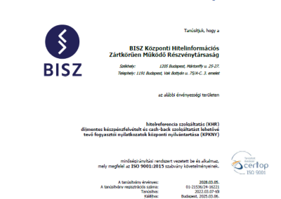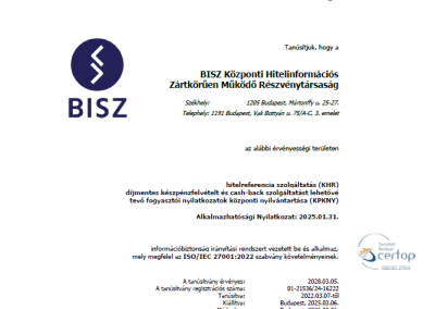 - Adatkezelési tájékoztató a BISZ Zrt. HelpDesk Rendszerébe történő regisztráció során megadott adatokhoz kapcsolódó adatkezelés tárgyában